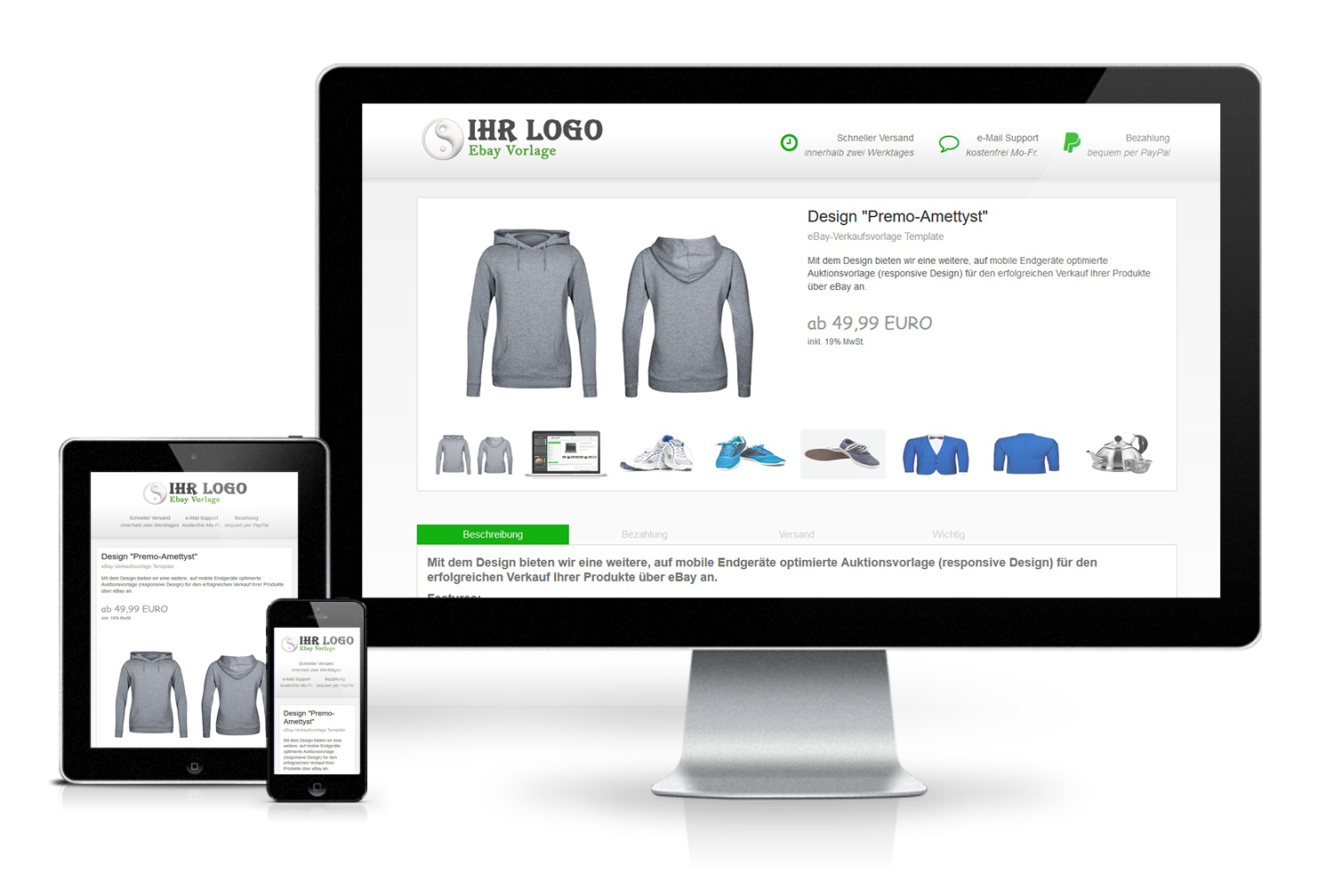 Mit dem Design bieten wir eine weitere, auf mobile Endgeräte optimierte Auktionsvorlage (responsive Design) für den erfolgreichen Verkauf Ihrer Produkte über eBay an.