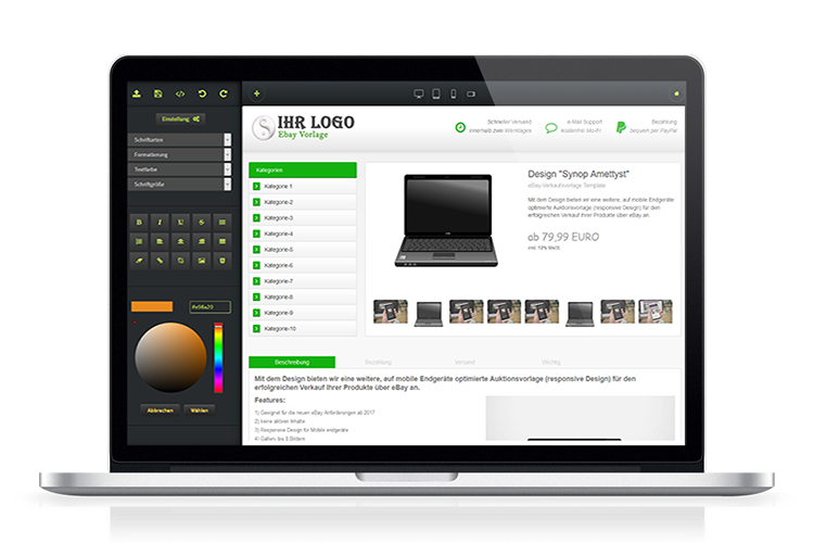 In unserem Template Editor können Sie die von eBay automatisch generierte Kurzbeschreibung überschreiben und den Text selbst bestimmen.